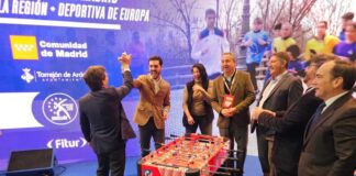 Fitur 2026: desde Almeida hasta el periodista Juanma Rodríguez, los futbolines del stand de Torrejón causan furor