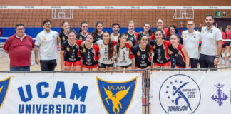 El alcalde Alejandro Navarro apoya al equipo femenino del Club Voleibol Torrejón en su primer triunfo en casa de la temporada