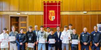 Los alumnos de 4º de la ESO que han realizado unas prácticas en la Policía Local de Torrejón reciben sus diplomas