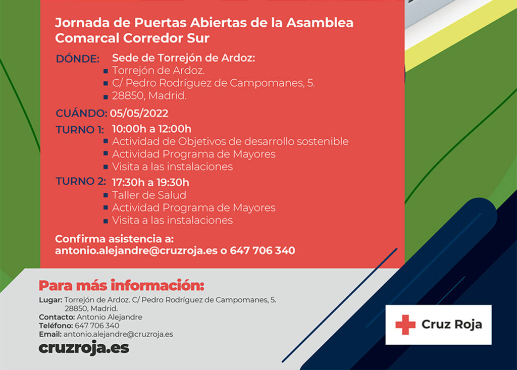 Todas las personas que quieran colaborar con ellos o recibir más información, pueden pasarse por la sede que tiene esta organización en Torrejón de Ardoz o bien, visitar la página web https://www2.cruzroja.es/