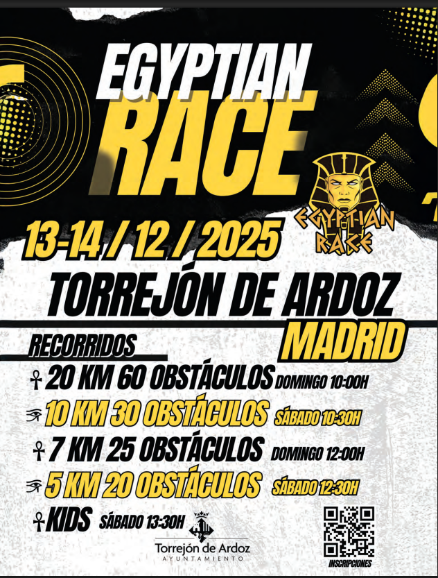 Torrejón de Ardoz se prepara para acoger, los próximos 13 y 14 de diciembre de 2025, una nueva edición de la Egyptian Race, una de las pruebas de obstáculos más esperadas del calendario deportivo madrileño.