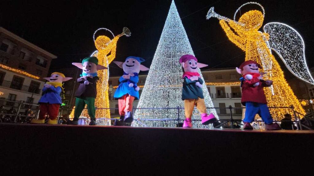 La celebración comenzó a las 18:30, cuando el público contó a coro los últimos segundos para el encendido de la iluminación navideña, que dio color y brillo a la plaza. Apenas unos minutos después, el cielo se iluminó con unos pequeños fuegos artificiales de bajo impacto sonoro que duraron apenas unos segundos.
