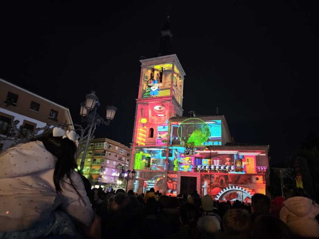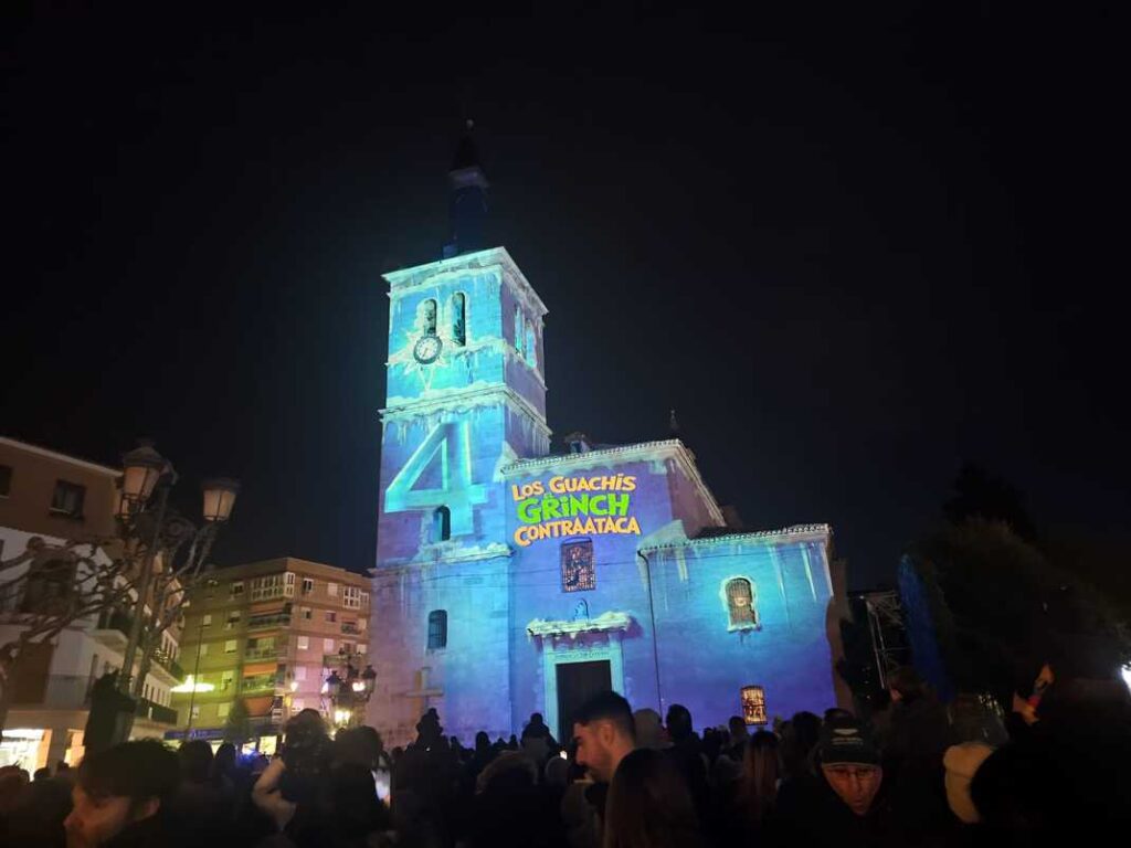La primera gran sorpresa visual llegó a las 18:35 con el videomapping “Los Guachis: El Grinch Contraataca”, una proyección en la Iglesia San Juan Evangelista que combinó humor, efectos visuales y el particular estilo de estas entrañables criaturas, que desde hace años forman parte del imaginario festivo local. Las risas y aplausos confirmaron el entusiasmo del público, que se mantuvo participativo durante toda la velada.