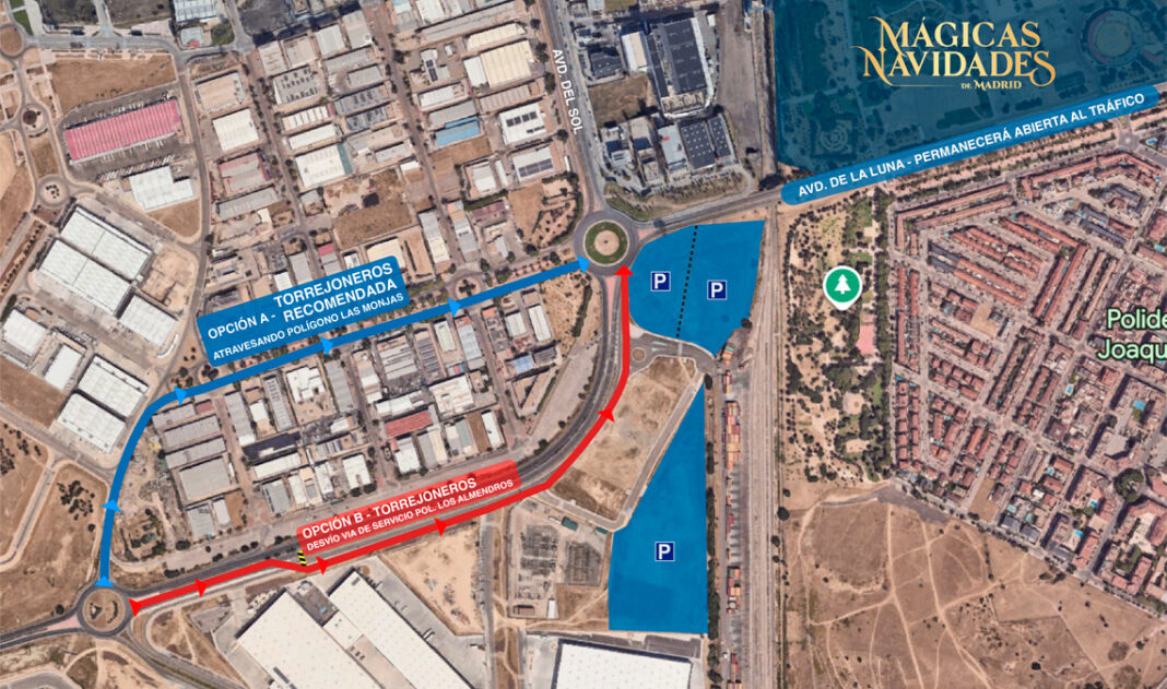 El consistorio de Torrejón de Ardoz informa que no se cortará la Avenida de la Luna y que se adaptarán estas medidas para evitar molestias al tráfico en el entorno del Parque Mágicas Navidades.