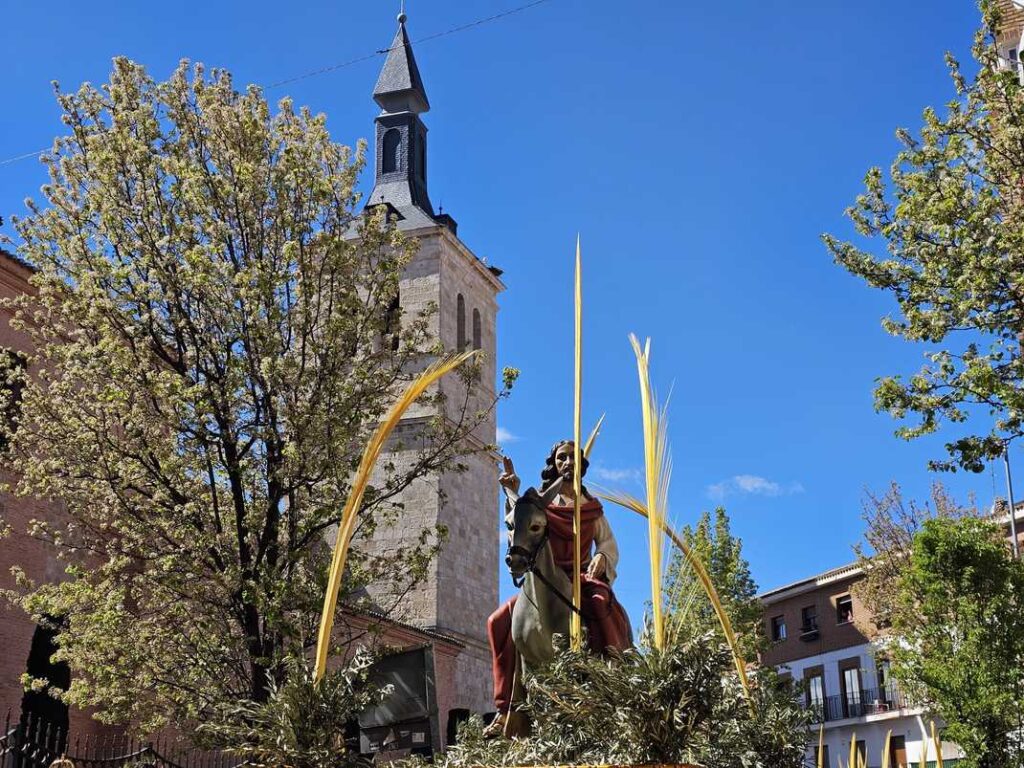 A las 11:00 horas, en la Plaza Mayor, tuvo lugar la Bendición de las Palmas, seguida por la Solemne Eucaristía en la Iglesia San Juan Evangelista. Tras la misa, se inició la procesión de “La Borriquita”, que recorrió las calles Puerta del Sol, Plaza Mayor, Curas, Granados, Ronda del Saliente, Hospital y retorno a Puerta del Sol (Iglesia).
