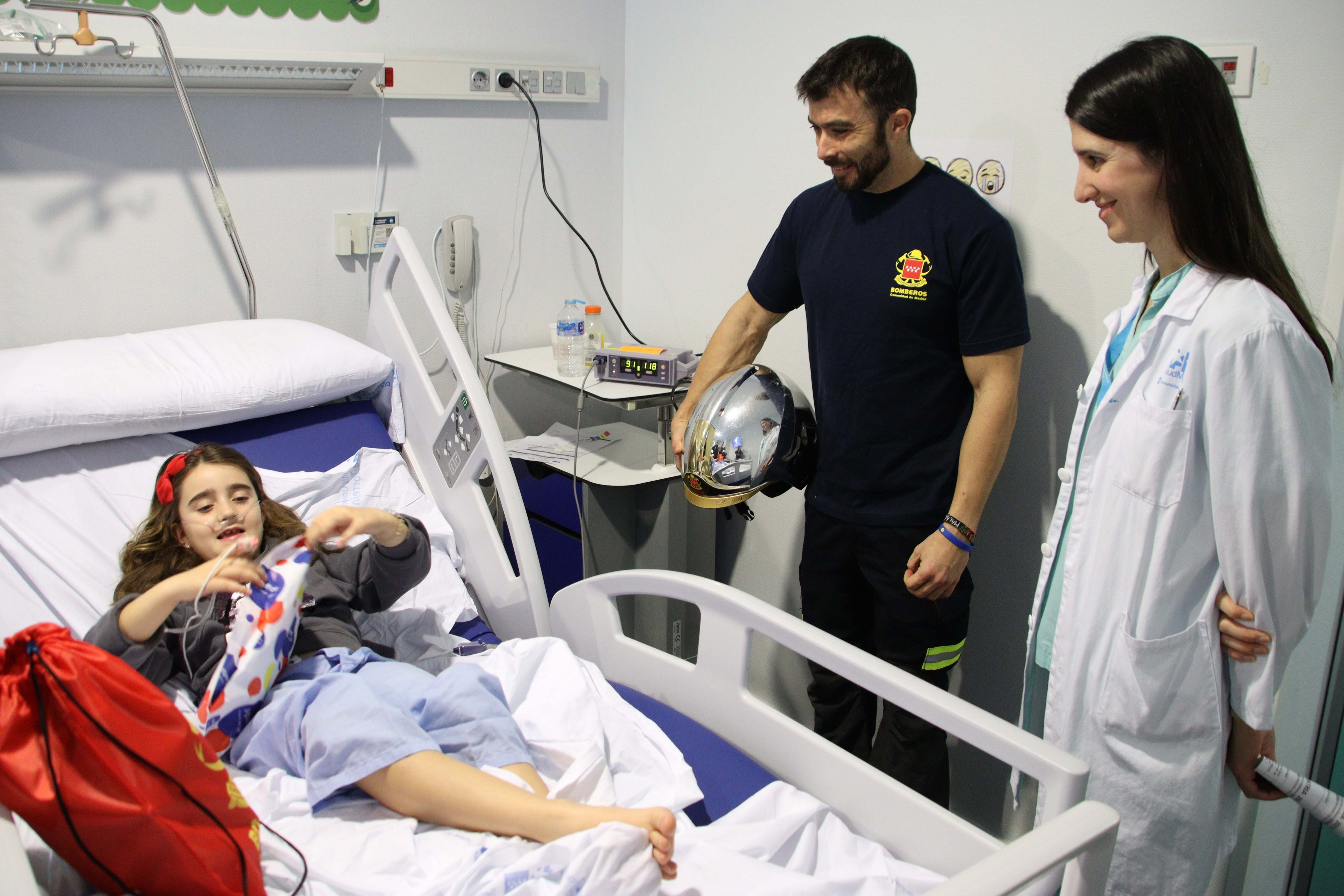 Los bomberos entraron en cada habitación y hablaron un rato con ellos, contándoles anécdotas de su profesión, dejándoles los cascos para que se los probaran y ayudándoles a abrir los regalos para que pudieran estrenarlos.
