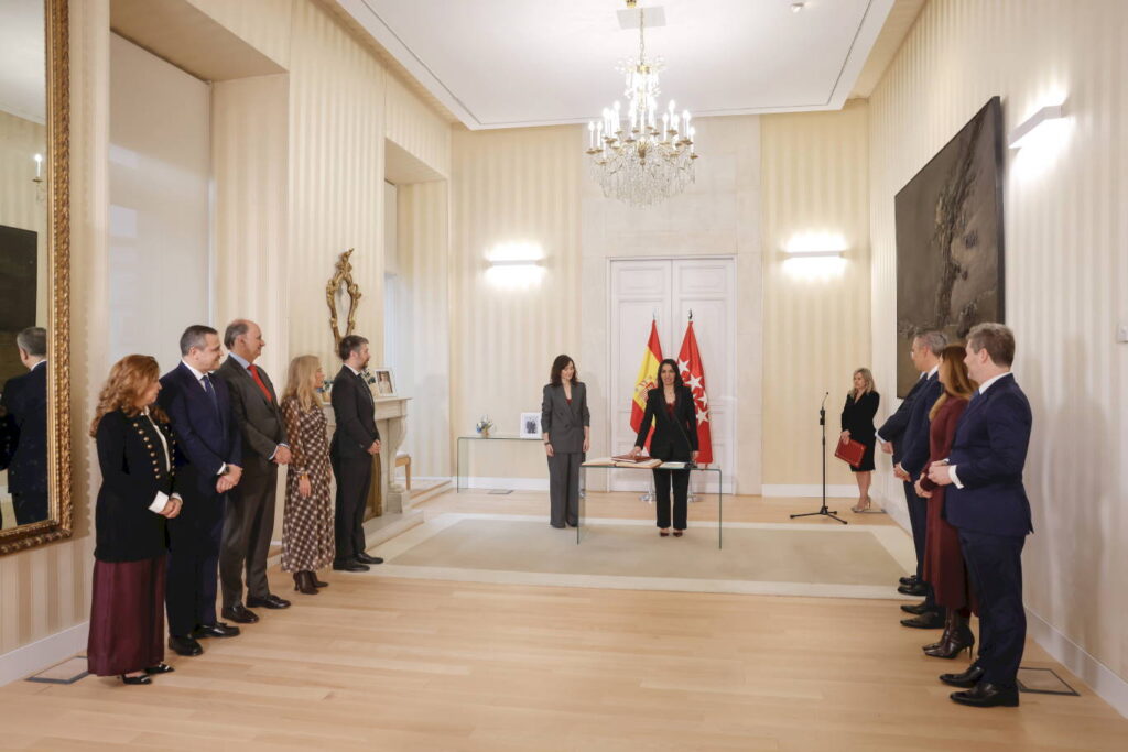 La presidenta de la Comunidad de Madrid, Isabel Díaz Ayuso, ha presidido este miércoles la toma de posesión de la nueva consejera de Educación, Ciencia y Universidades, Mercedes Zarzalejo, que ha jurado su cargo en la Real Casa de Correos, sede del Gobierno regional.