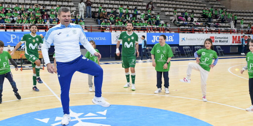 Alumnos de los colegios Severo Ochoa y Juan Ramón Jiménez, junto a participantes de la Fundación Raíles y personas con diversidad funcional, compartieron una mañana inolvidable con la plantilla de Movistar Inter FS.