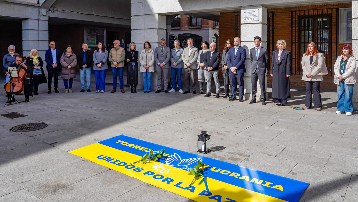 Este martes Torrejón de Ardoz se ha detenido para guardar un minuto de silencio, con motivo del cuarto aniversario del inicio de la guerra en Ucrania. Un gesto sencillo, pero cargado de respeto y emoción convocado por el Ayuntamiento y la Asociación Ucraniana en la ciudad para homenajear a las víctimas y expresar su solidaridad con el pueblo ucraniano.