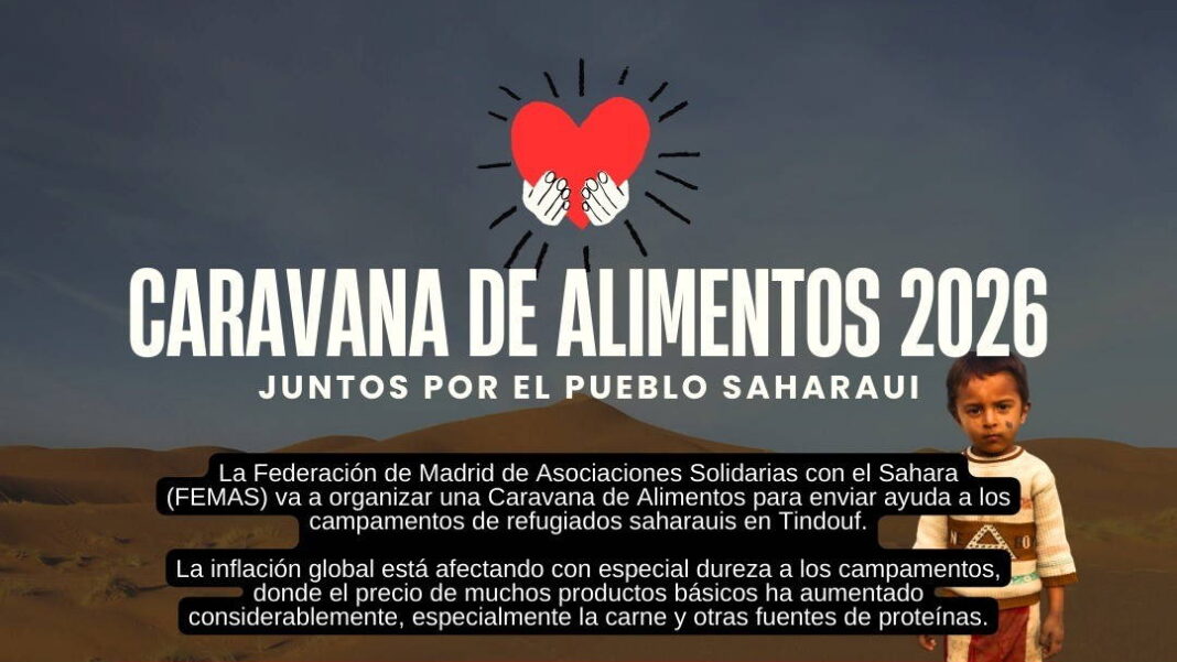 La iniciativa está organizada por la Federación de Madrid de Asociaciones Solidarias con el Sáhara (FEMAS), que prepara una caravana solidaria para enviar ayuda a los campamentos de refugiados saharauis en Tindouf (Argelia).