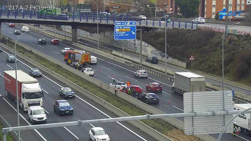 Un accidente de tráfico ocurrido en torno a las 13:00 horas está complicando seriamente la salida a Madrid por la autovía A-2, a la altura de la salida 22 de Torrejón de Ardoz. El siniestro ha generado más de tres kilómetros de retenciones en ambos sentidos de la circulación, según han informado fuentes de la Dirección General de Tráfico.